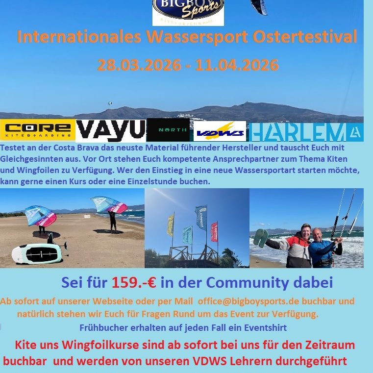 Es erwartet Euch dort Kite und Wing Testmaterial führender Hersteller.